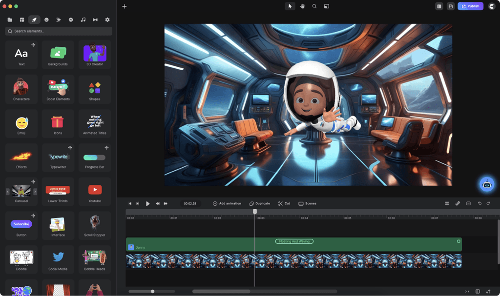 Sebaik sahaja anda puas hati dengan video kartun, anda hanya perlu tekan Publish. Anda boleh eksport video kartun dalam pelbagai format sehingga 4K.