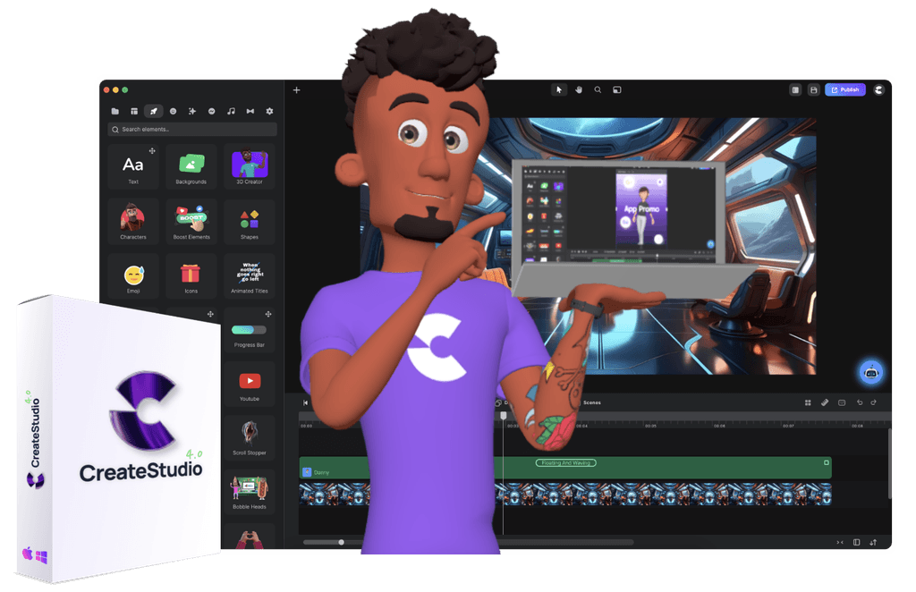 Iye, CreateStudio dicipta oleh pakar animasi Pixar Hollywood untuk mudahkan kerja filem kartun. Hanya Pilih, Drag & Drop terus siap video!